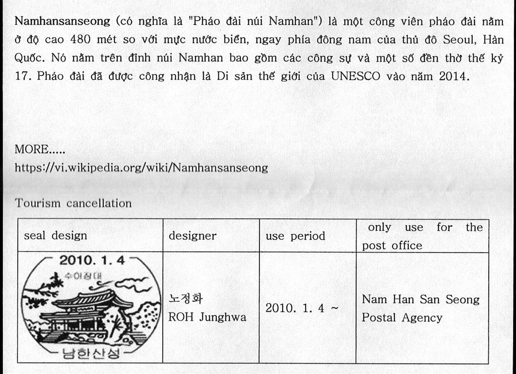 14 Jan 2017 [KOREA] Received on 2016 by mousestampvn | posted in: Korea | 0 UNESCO Word Heritage – NAM HAN SANSEONG